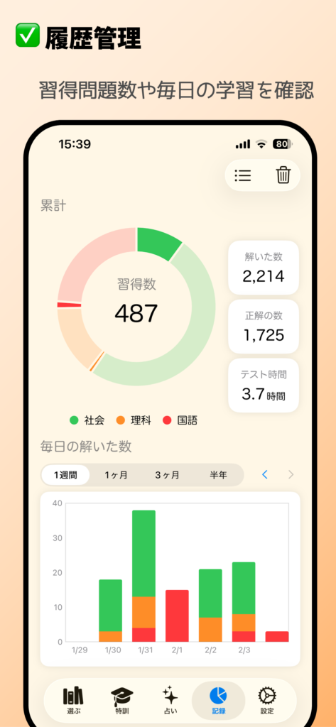 すべての機能を無料で利用でき、安心して毎日の学習習慣を身につけられます